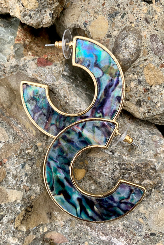 These Abalone hoop earrings are filled with marbleized Abalone shell that will sparkle and have all eyes on you.