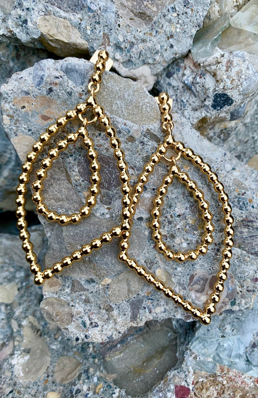 These modernized forward facing double drop gold beaded earrings are a find. Crafted of gold-plated metal, these Vince Camuto earrings are a definite fashion statement that will add style to any outfit.
