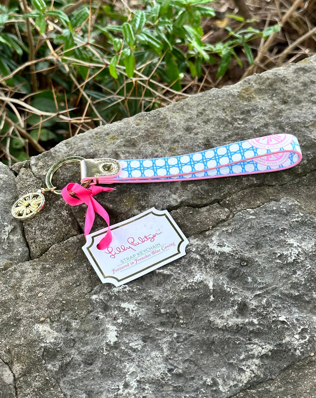 Featured in "Frenchie Blue Caning" Lilly Pulitzer Printed Leatherette Key Ring